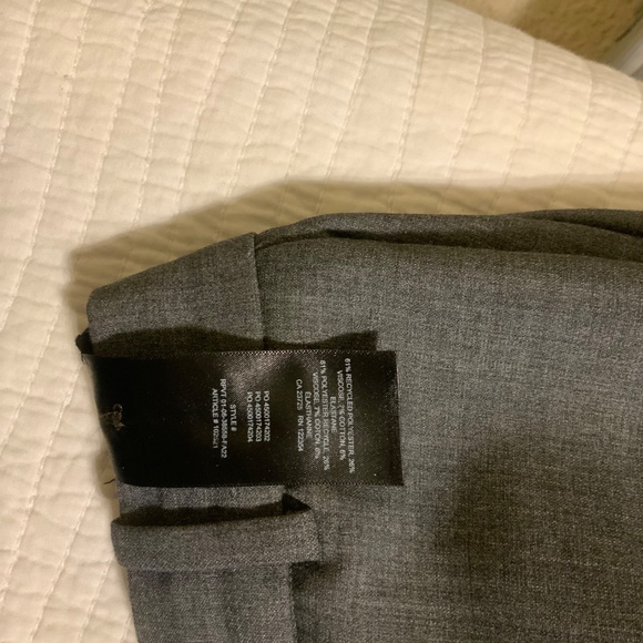 Get with the program - Or into the Program. These are high-rise flared trousers with slash hand pockets, a darted back waist and a classic fit. They're finely tailored with (Re)ssential — softly structured stretch fabric that holds its form while you move easy. This fabric is sourced from a premier Portuguese mill and made with 54% recycled polyester and 26% LENZING™ ECOVERO™ Viscose. Size 8, excellent condition.
