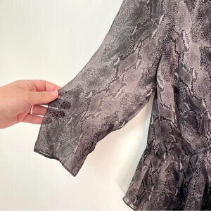 Aritzia Babaton Reptile Print Silk Blouse. Faux wrap front with elastic peplum ruffle hem. 100% silk. Super lightweight and flowy. Semi sheer. Perfect top for summer. Size medium. Excellent condition.