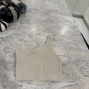 Chic one-shoulder design. Soft ribbed fabric. Versatile and stylish.