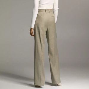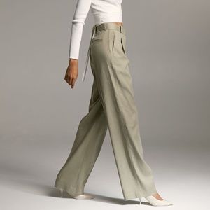 This is a wide-leg, high-waist trouser with deep pleats and back darts.