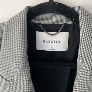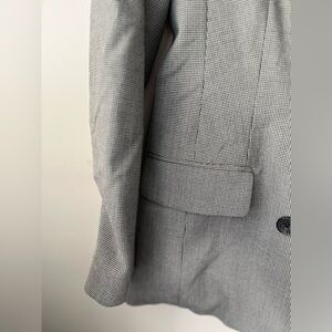 This is a double-breasted blazer with menswear-inspired tailoring. It's made from a yarn-dyed fabric, which means the plaid is woven right into the fabric.