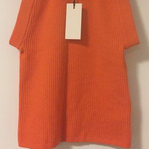 The models are wearing Green color and Black color, and the sweater for sale is in CITRINE ORANGE.