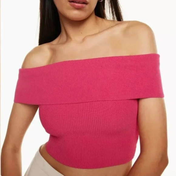 Aritzia Babaton Sculpt Knit Off Shoulder Top Eros Pink Size Medium NWT