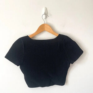 Aritzia Babaton Sculpt Knit Squareneck Short Sleeve Top Black Size Medium