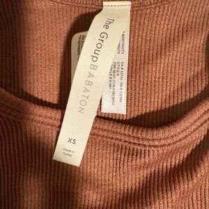 Super flattering ribbed high-neck crop in a warm cinnamon brown shade. Worn once, still in perfect condition. Sculpt-knit material is stretchy, comfy, and snatches you in.