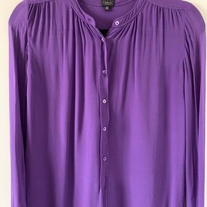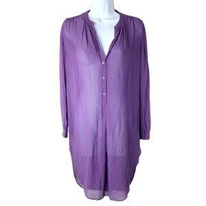 Aritzia Babaton Shirt Dress Button Down front Silk Long sleeve Purple Size XXS
