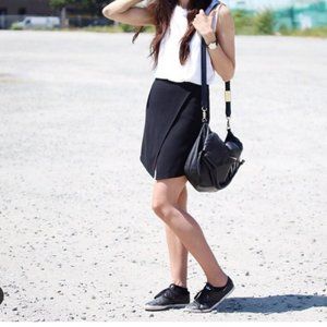 Aritzia Babaton Skirt with cute front cross front skirt, black size 4. Good condition dry clean only. Minor mark on the front of the skirt, would come out with a dry clean.