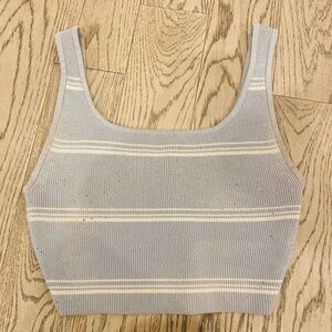 Aritzia Babaton Square Neck Ribbed Cropped Blue and White Striped Top