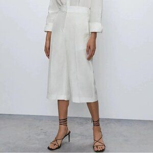 Aritzia Babaton Tahoma Pant High rise Linen Culottes Wide Leg Crop Trouser White
