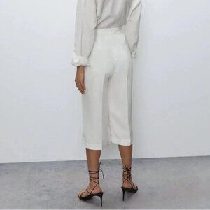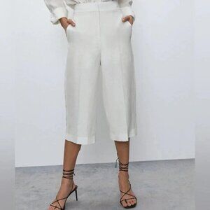 Aritzia Babaton Tahoma Pant High rise Linen Culottes Wide Leg Crop Trouser White