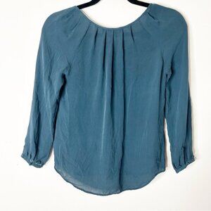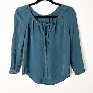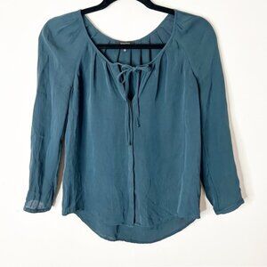 Aritzia Babaton Tie Front Blouse Forest Green Teal Scoop neck Size Drapey XXS