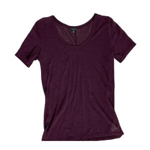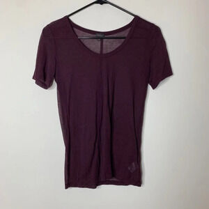 Aritzia Babaton T-shirt Top Sheer Mesh Short Sleeve Crew neck Maroon Size XS