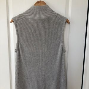 The most luxurious, soft knit material on this beautiful, cream colored sleeveless sweater. It features a loose turtleneck and elegant side detail. The perfect length to wear with shorts and flats or with leggings when it gets a little cooler.