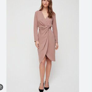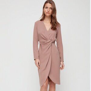 Aritzia Babaton Twist Front Long Sleeve Dress Beige Taupe Size Small
