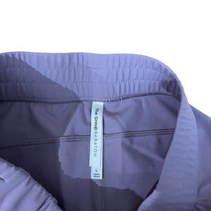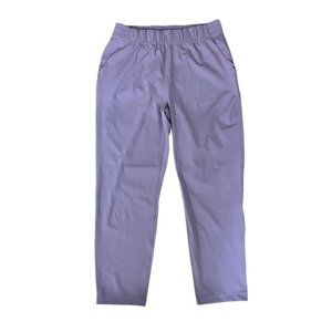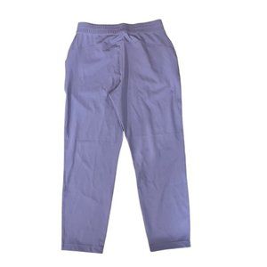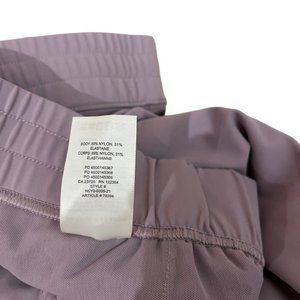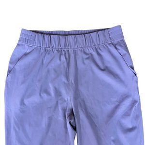 These are high-rise joggers with an elastic waist and slash hand pockets. They're made from slick, high-stretch fabric that wicks sweat.