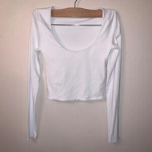 Aritzia Babaton White Sculpt Cropped Long Sleeve Shirt XS