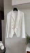 Elevate your style with this elegant white double-breasted blazer. Featuring gold buttons for a touch of sophistication, this jacket is perfect for any occasion.