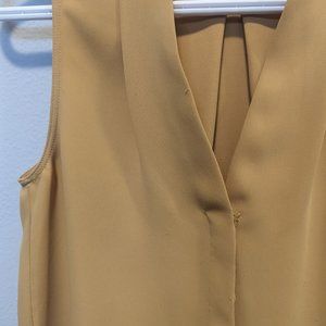 Sleeveless mustard v-neck shirt with hook clasp. Minor snagging on the right side. Loose fitting