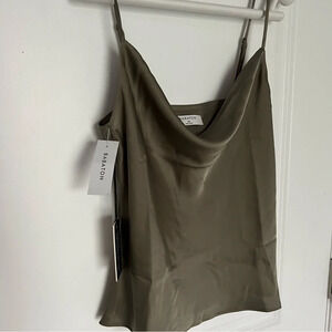 This is a cowl-neck camisole with adjustable straps and a bias cut. It’s made from luxe, lightweight satin from Japan