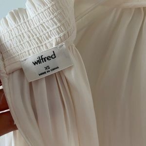 Aritzia cream coloured blouse with back key hole detail. Worn less than a handful of times and selling because I no longer reach for it in my closet. Is an XS however fits closer to a size Small. Gorgeous buttoned sleeve details and turtleneck style neck. Works with a pencil skirt or dressed down with high waisted jeans.
