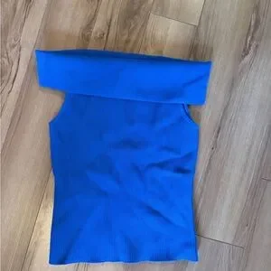 Aritzia Blue Off-Shoulder Ribbed Top