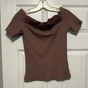 Stylish brown off-shoulder ribbed top. Perfect for casual outings. Worn once.