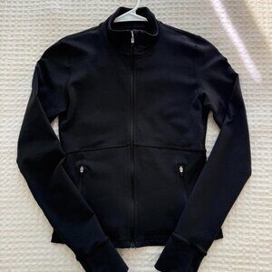 aritzia butter tna black zip up workout jacket type thing. it’s a thicker material than the limit jacket - it feels more like lulu define imo