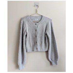Soft and cozy fuzzy cardigan. Button-up front. Long sleeves. Perfect for layering.