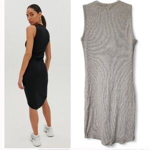 Aritzia Community Grey Midi Ribbed Sleeveless Stretch Tank Dress Size S