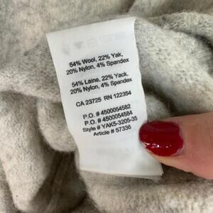 Content: 54% wool, 22% yak, 20% nylon, 4% spandex