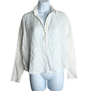 Aritzia Community Shirt Poplin cotton linen White Collared Half Button Size XXS