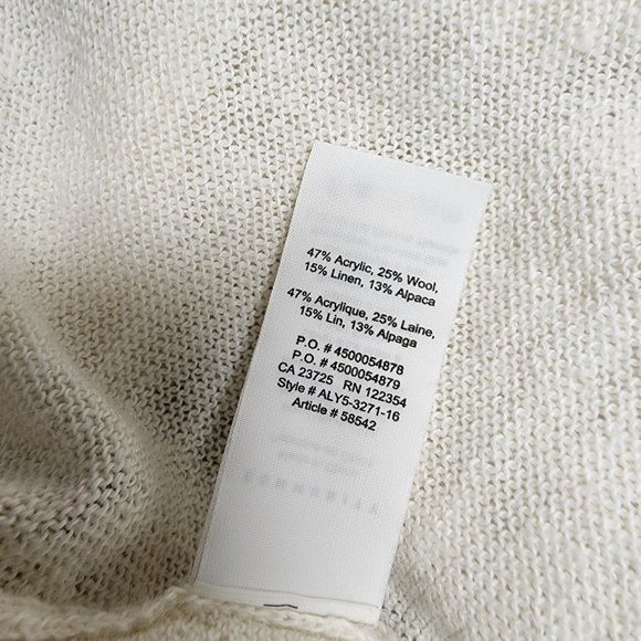 47% acrylic, 25% wool, 15% linen, 13% alpaca