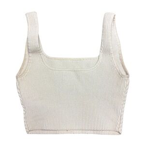 Discover elegance with this cream ribbed crop top. Perfect for any occasion, it offers a stylish and comfortable fit. There are some markings and signs of wear (haven’t tried bleaching). Not sure if they still sell this style anymore.