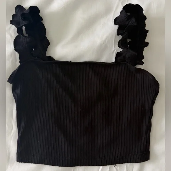 Artizia black ruffle crop top. Sundeh brand. Size 2XS but fits like true XS. Good condition