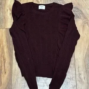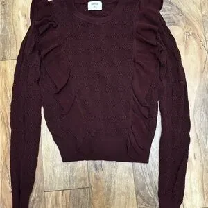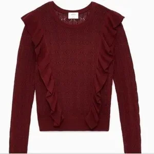 Aritzia Deep Red Ruffle Knit Top
