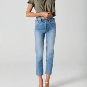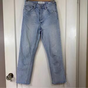 Aritzia Denim Forum Arlo High Rise Straight Cropped Frayed Hem