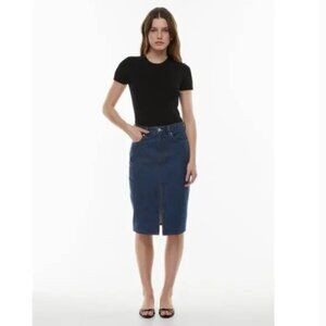 Aritzia Denim Forum The 90s Halle Skirt Midi Pencil Straight Dark Wash Size 28
