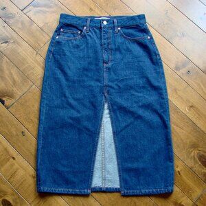Aritzia Denim Forum The 90s Halle Skirt Midi Pencil Straight Dark Wash ~ Size 28 (I had to list as a size medium as Poshmark does not have a size 28 under their skirts for a size) ~ 100% Cotton