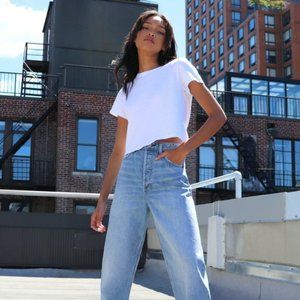 Aritzia high rise, wide-leg jeans in "picture this bleu1". New with tags.