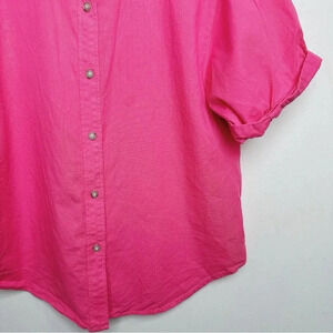 Aritzia Denim Forum Womens Size Xsmall Button Hot Pink Roll Sleeve Jane Shirt