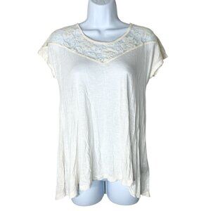 Aritzia Dilemma Lace T-Shirt Blouse Top Short sleeve Ivory Cream Flowy Size S