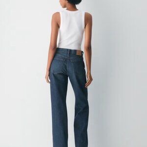 Inspired by bold, adventurous '70s icons, The Farrah is Denim Forum’s signature wide-leg jean. With a high rise and slim hip, the Farrah hugs the figure and flares gradually out from the leg, ending in a clean hem. They're cut from heavyweight, non-stretch denim that molds to your body over time. This fabric is sourced from a premier Italian mill and made with 100% regenagri-certified regenerative cotton. So go ahead, ride a skateboard. Fight crime. But do it with big hair. This version comes in a dark indigo wash.