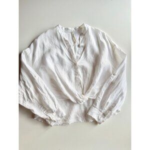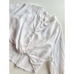 Aritzia GROUP BY BABATON Portofino White Linen Cropped Button-Up Shirt, Size M