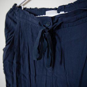 Elastic and tie on top. Pockets. Mid calf length. Great with bodysuit and heels.