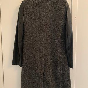 Babaton black with white threading/specks jacket and leather sleeves from Aritzia.