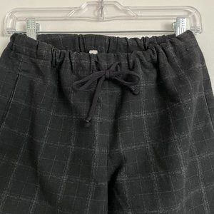 A classic pair of black fine grid trousers for the every day look or at the office. The drawstring waist band, dual pockets and cropped ankle length give this piece a nice tailored look. In great condition. This subtle plaid print is great for any closet collection!