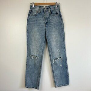 * Aritzia Denim Forum, Joany Rise Loose Jeans, Light Wash, Size 29, Button-Up Fly, 100% Cotton, Wide Leg Cut, Distressing Detail, Grunge Style, Mom Jean Fit, Trendy, Comfortable, Relaxed Fit, Fashionable, fall