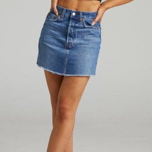 Aritzia Levi's Deconstructed Denim Mini Skirt in Medium/Dark Wash - Size 24