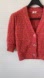 This is a V-neck cardigan with puff sleeves. It's made with a multi-coloured Italian yarn.