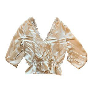 Aritzia Little Moon - Champagne Pink 100% Silk Blouse Lace Trim - XXS